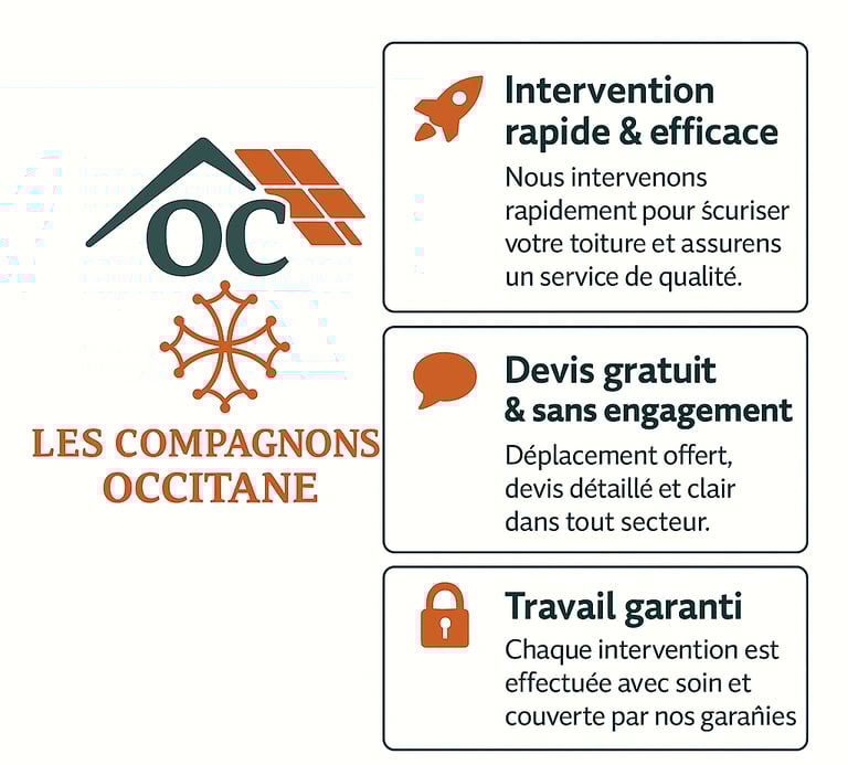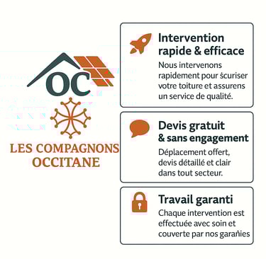 👉 Avec Les Compagnons Occitane, vous avez l’assurance d’un couvreur de proximité, réactif et disponible, qui intervient rapidement dans toute la région autour de Tournefeuille (31).